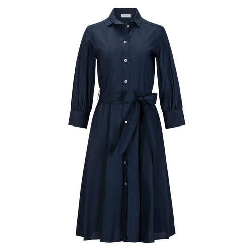 Belted Shirt Dress with Puffed Sleeves - Navy