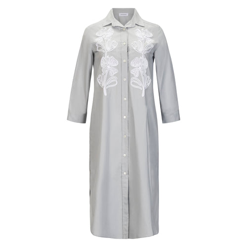 Embroidered Long Sleeve Shirt Dress - Dove Grey